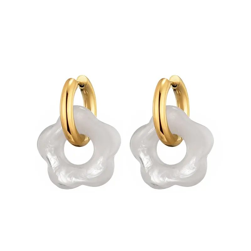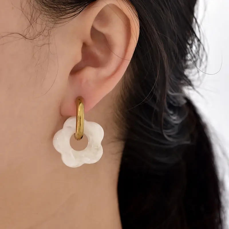 أقراط أكريليك متدلية جديدة من الراتنج والزهور لون ذهبي دائرية دائرية من الفولاذ المقاوم للصدأ أقراط طارة بإبزيم للأذن هدية مجوهرات للنساء