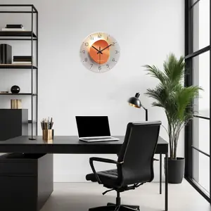 ساعة حائط من الزجاج المقسى بنمط مسطح فاخر مع تأثير الضوء والظل لغرفة المعيشة وغرفة النوم والمطبخ، ديكور منزلي، ساعة كوارتز صامتة، هدية للعطلات 12-16 بوصة (بدون إضاءة)