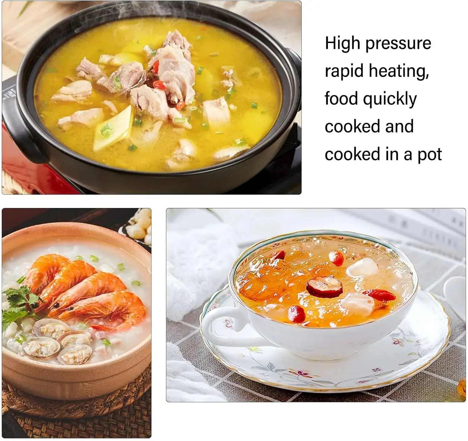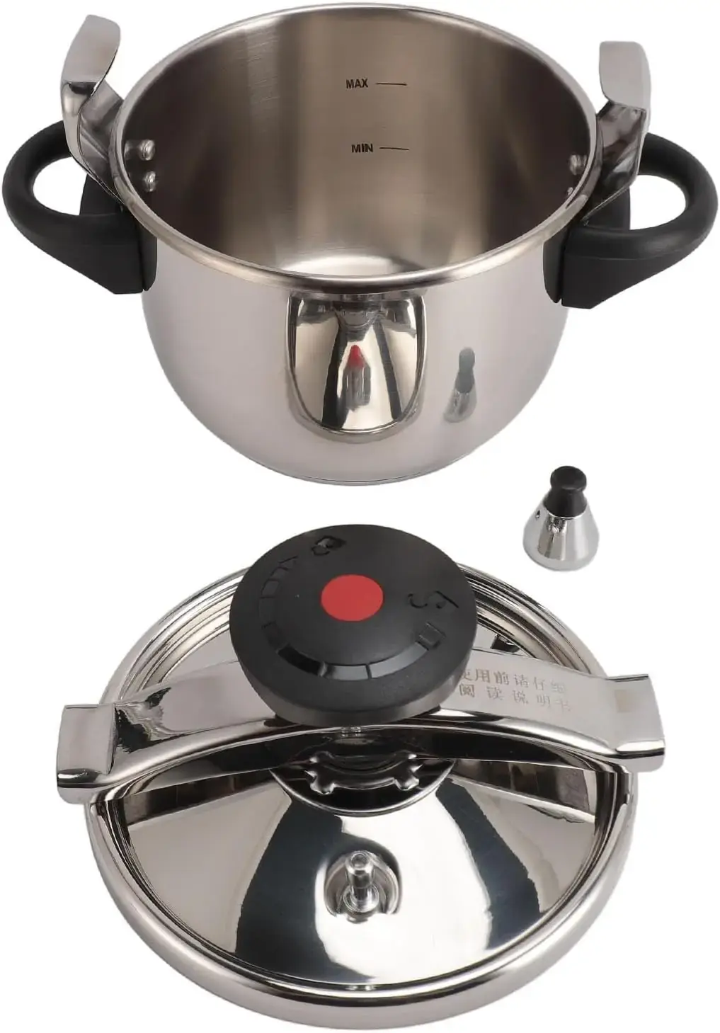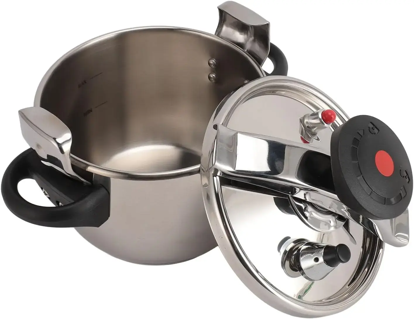 طهي فعال: طنجرة ضغط صغيرة مصنوعة من الفولاذ المقاوم للصدأ تطهو الطعام تحت ضغط عالٍ، مما يرفع درجة غليان الماء ويسرع عملية الطهي.يوفر الوقت ويحتفظ بالمزيد من العناصر الغذائية مقارنة بالطهي التقليدي.متوافق مع مواقد الحث الحراري، مواقد الغاز، المواقد الكهربائية، المواقد السيراميكية، وغيرها.