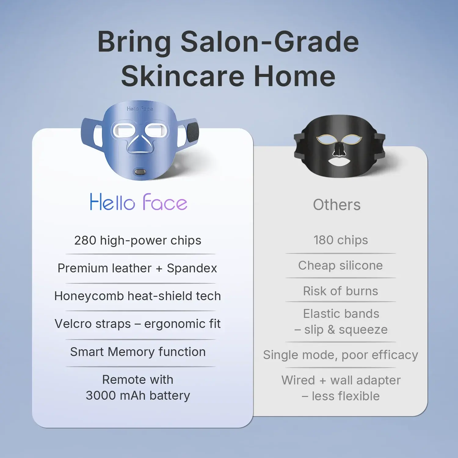 تمتلك Hello Face مختبرًا مستقلًا للبحث والتطوير وكانت شريك OEM لأفضل العلامات التجارية للعلاج بالضوء الأحمر في الولايات المتحدة والاتحاد الأوروبي لأكثر من عقد من الزمن، حيث تخدم بكل فخر أكثر من 16,000 عميل.نحن نقدم الآن أجهزة العناية بالبشرة الاحترافية مباشرةً إليك بأسعار مناسبة.معبأ بشكل جميل، فهو هدية مثالية لأعياد الميلاد أو الكريسماس أو عيد الحب.يشمل كل جهاز ضمان لمدة عام ودعم عملاء على مدار الساعة طوال أيام الأسبوع، مما يمنحك راحة البال.