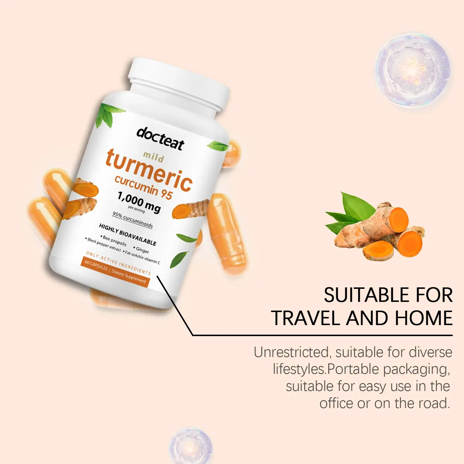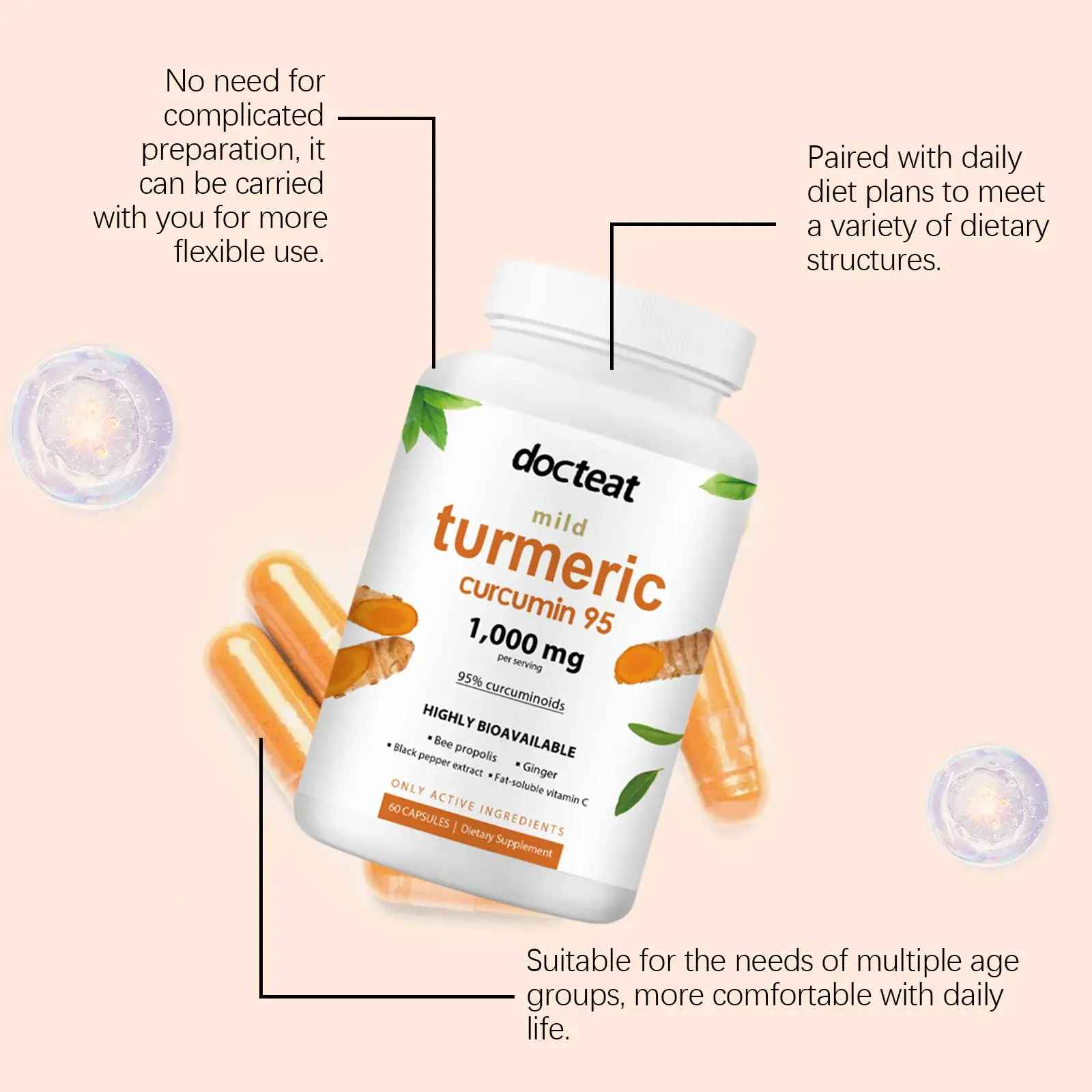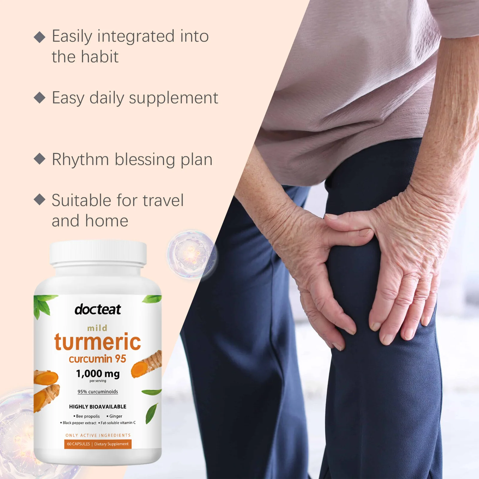 كبسولات دكتيت الكركمين للمفاصل – تخفف آلام المفاصل، تحسن الإرهاق الجسدي، تعزز الحيوية، تدعم المناعة، كبسولات صحية – 60 قطعة