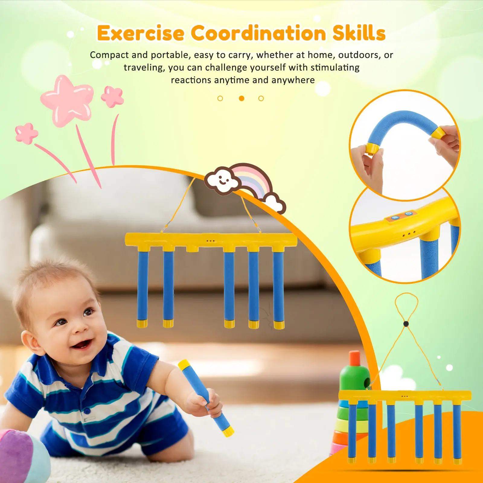لعبة العصي الملفتة هذه هي لعبة تعليمية لتدريب ردود الفعل، تهدف إلى تنمية وتعزيز تنسيق الأطفال وانتباههم وتكامل حواسهم.يحتوي على 3 سرعات تنزيل قابلة للتعديل ووظيفة موسيقى مدمجة تضيف متعة وتحدٍ للعبة.