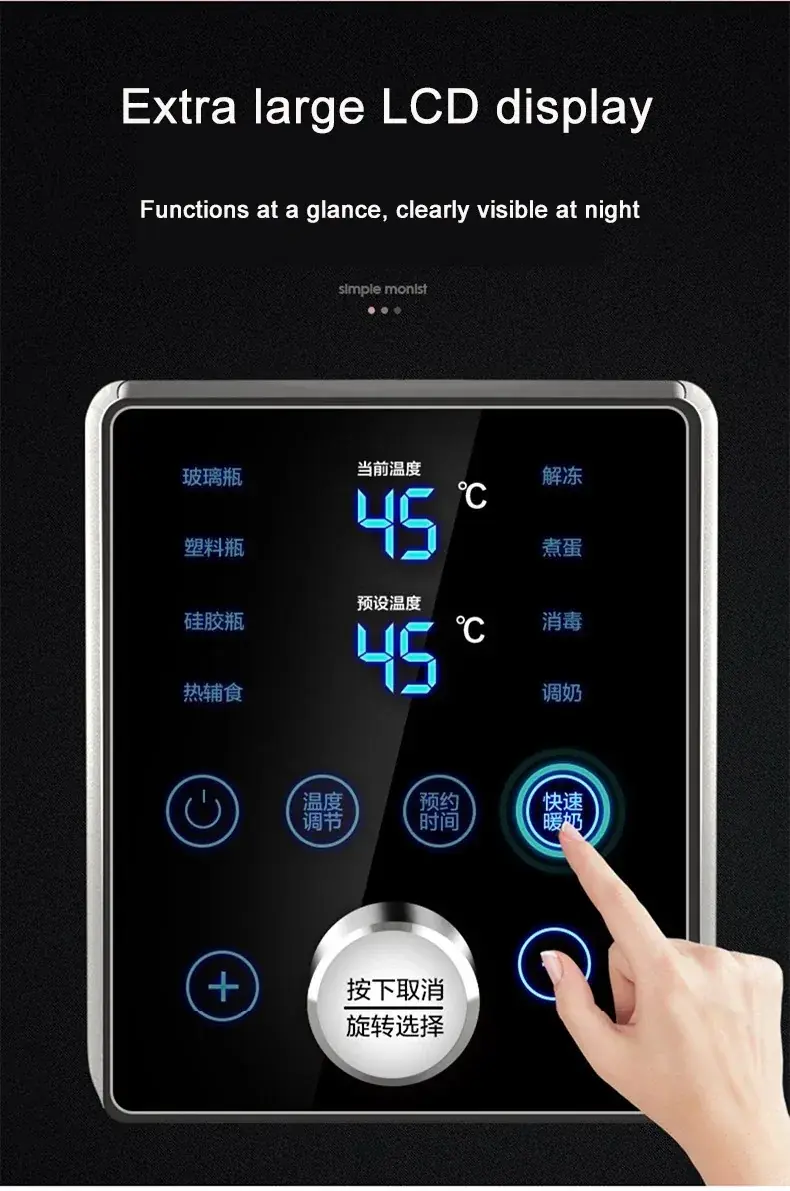 مدفأة زجاجات الأطفال، مدفأة حليب سريعة 8 في 1 مع مؤقت للحليب الأم أو الحليب الصناعي، تتسع لزجاجتين، تحكم دقيق في درجة الحرارة، مع وظائف إذابة التجميد، التعقيم، الحفظ، وتسخين عبوات طعام الأطفال.