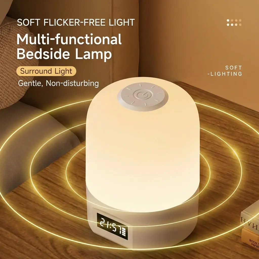 استمتع بالمزيج المثالي من الوظيفة والراحة مع مصباح السرير LED متعدد الوظائف هذا.تم تصميمه ليكون أكثر من مجرد ضوء، فهو يتميز بساعة رقمية مدمجة وشاشة عرض لمستوى البطارية، مما يجعله رفيقًا أساسيًا لمنضدتك الليلية.يتناسب تصميمه الأسطواني البسيط بسلاسة مع أي ديكور حديث، مما يوفر إضاءة ناعمة وغير وامضة بزاوية 360 درجة تحمي عينيك مع خلق جو مريح.