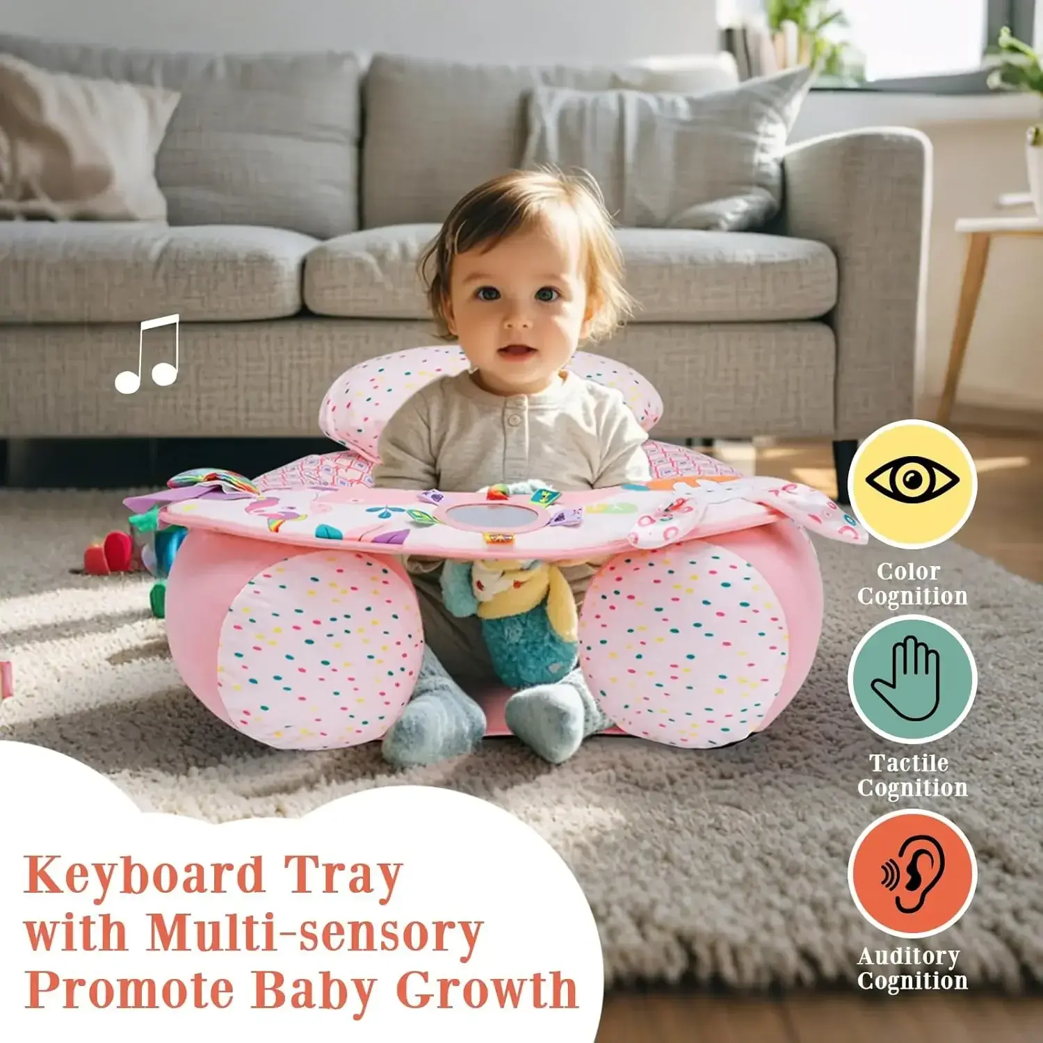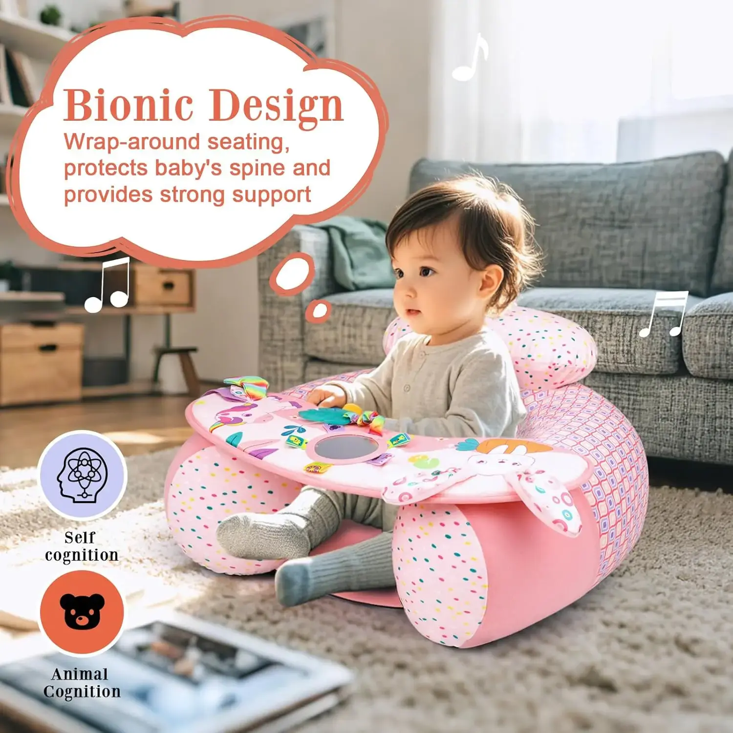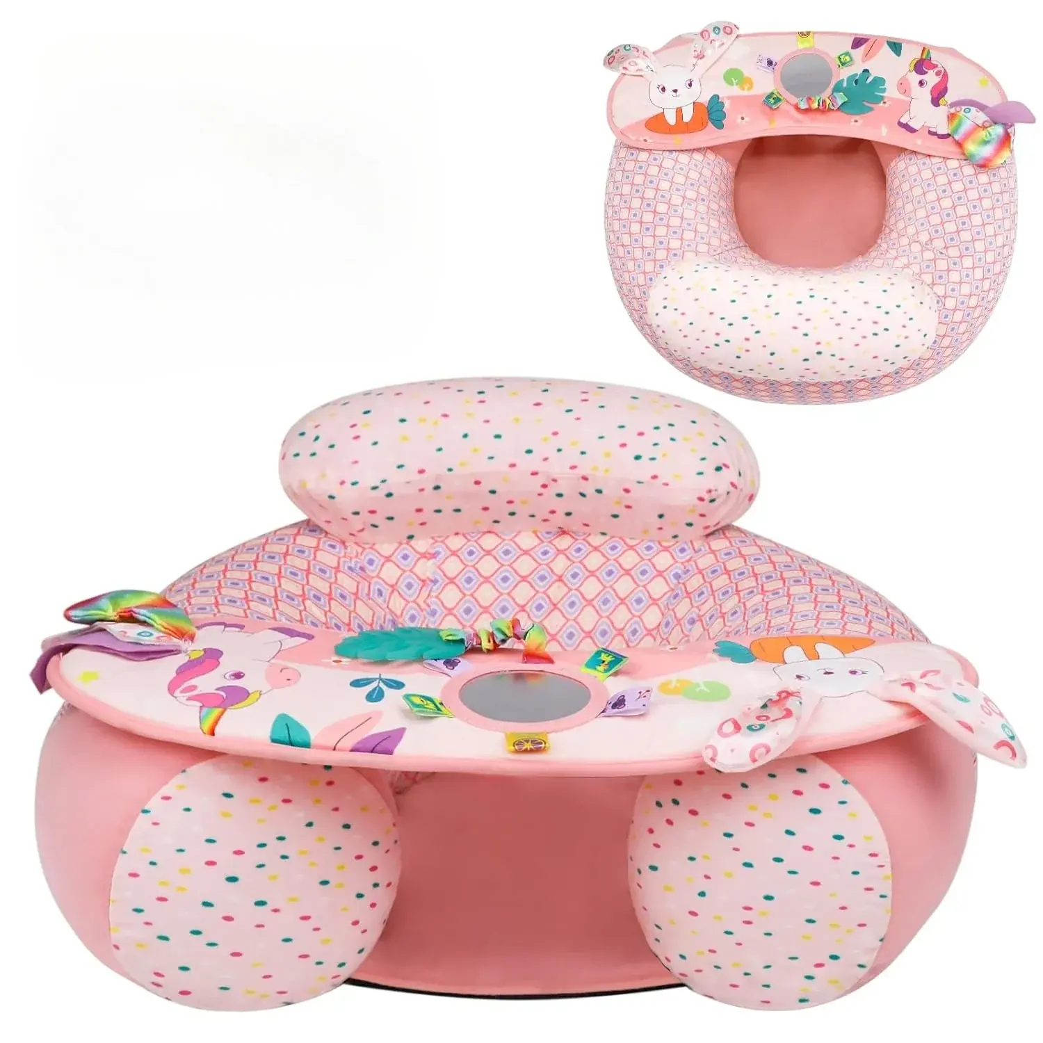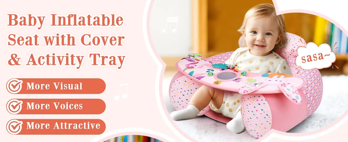 تصميم بيونيك: يعتمد مقعد الأرضية للأطفال على تصميم بيونيك يحيط بالطفل، وهو ناعم وآمن مثل عناق الأم. مقعد الأطفال القابل للنفخ مع صينية يحمي العمود الفقري للطفل، ويوفر دعماً قوياً، ويساعد الطفل على تعلم الجلوس بشكل صحيح.