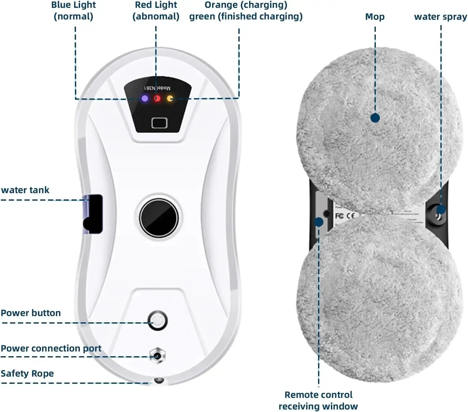 تنظيف فعال: يحدد روبوت تنظيف النوافذ البقع بذكاء وينظف بنقرة واحدة.يستخدم قطعة واحدة من خيوط خاصة، وقماش تنظيف مخصص من ألياف مطورة، لا يلتصق بسهولة بالشوائب، يتميز بإحكام جيد وقفل ماء أقوى.من السهل جدًا تشغيله وهو مناسب للأسطح العمودية الملساء مثل الزجاج، البلاط، المرايا، الجدران، أسطح الرخام وغيرها. ملاحظة: يجب توصيل روبوت تنظيف النوافذ بمصدر الطاقة أثناء التشغيل.
