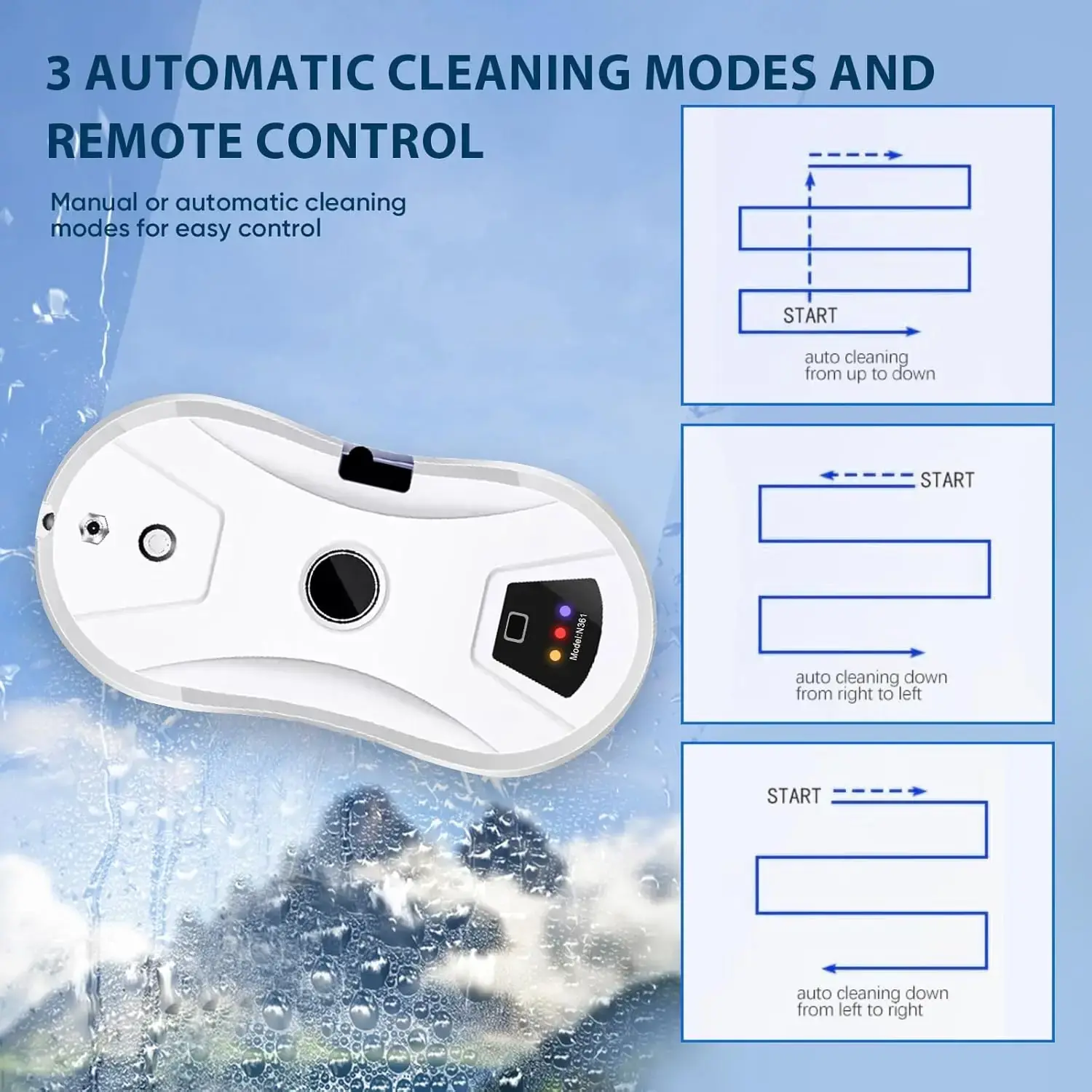 روبوت تنظيف النوافذ الذكي: تخطيط ذكي بالذكاء الاصطناعي لروبوت تنظيف النوافذ، أوضاع تنظيف مختلفة (N، Z، N+Z)، استشعار تلقائي للبيئة لتعديل المسار المخطط في الوقت المناسب، وتحسين كفاءة التنظيف.مزود بنظام تنظيف بالذكاء الاصطناعي 4.5، بتصميم مربع الشكل يضمن عدم ترك أي غبار في الزوايا الصعبة أو الحواف، مع تنظيف شامل دون إغفال أي منطقة، وسهولة في إزالة البقع من مختلف الزوايا.