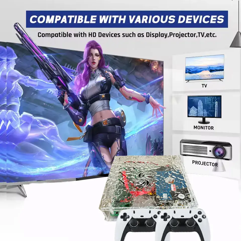 لا حاجة لتكوين النظام لساعات! لا حاجة لجهاز كمبيوتر!وحدة التحكم في الألعاب الخاصة بنا جاهزة للاستخدام! قم بتوصيل التلفزيون أو جهاز العرض والعب!