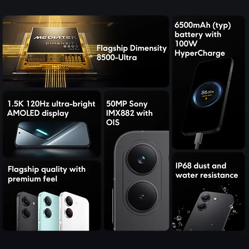 نظام التشغيل———–مدعوم بنظام Xiaomi HyperOS 3، يدعم لغات متعددة ومتجر Google Play، مستشعر بصمة مدمج في الشاشة، فتح القفل بالوجه باستخدام الذكاء الاصطناعي، مقاومة للغبار والماء بمعيار IP68، مكبرات صوت ستيريو.|ميكروفون مزدوج، شهادة Hi-Res و Hi-Res Audio Wireless، دولبي أتموس®