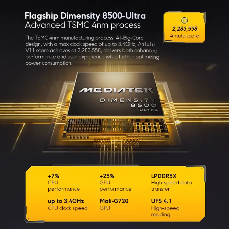 بطارية——بطارية بسعة 6500 مللي أمبير (نموذجي)، شحن HypeCharge بقوة 100 واط (يدعم بروتوكول الشحن PPS بقوة 100 واط وشحن عكسي بقوة تصل إلى 27 واط).