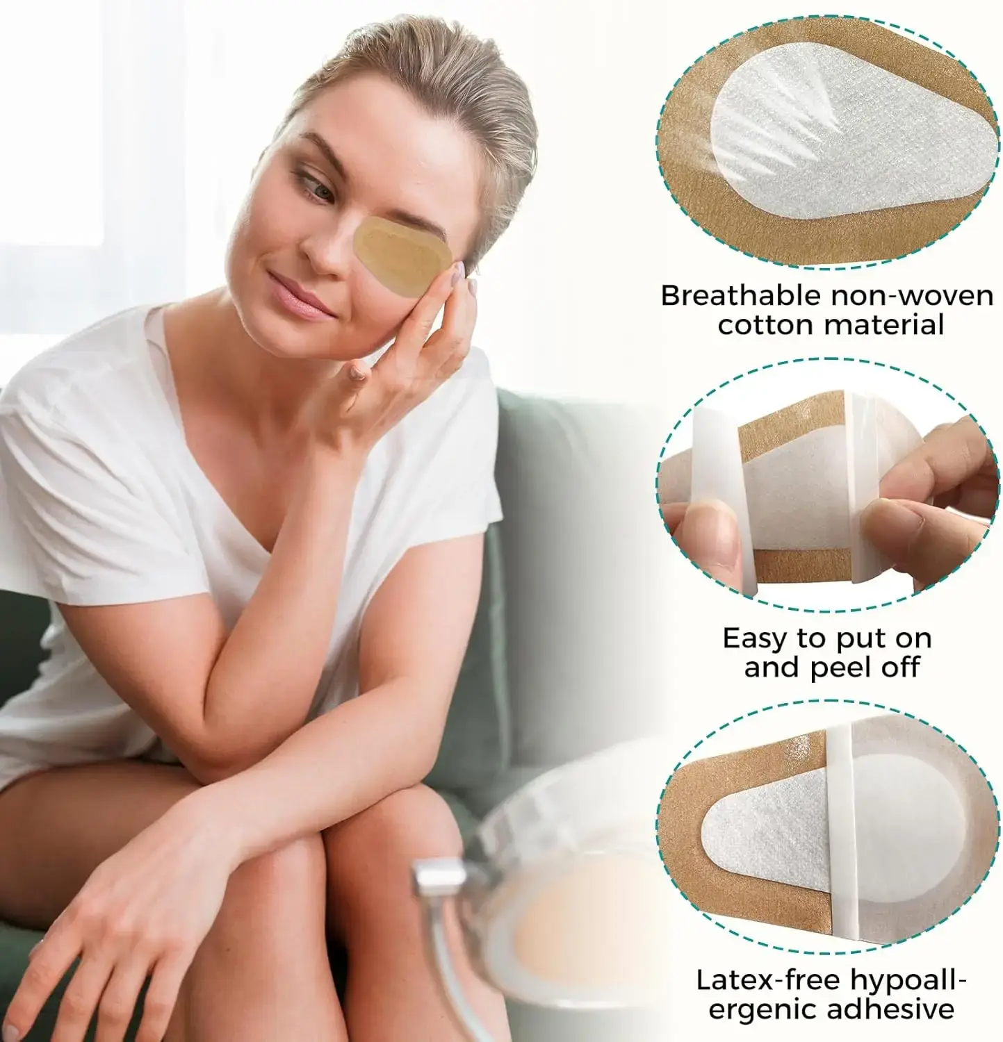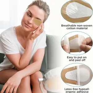 【مريح وقابل للتنفس】: لصقات العين اللاصقة لدينا مصنوعة من مادة ناعمة وقابلة للتنفس، تتميز بتصميم شبه محكم، مريحة عند اللمس وخفيفة الوزن، مما يوفر أقصى درجات الراحة للبشرة.