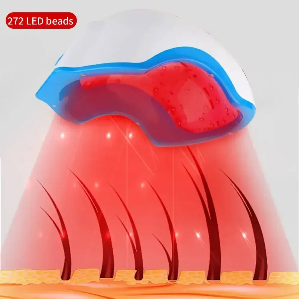 خوذة نمو الشعر بالليزر 272 لعلاج إعادة نمو الشعر بسرعة، قبعة تدليك لفروة الرأس والرأس، جهاز علاج تساقط الشعر للاستخدام المنزلي.