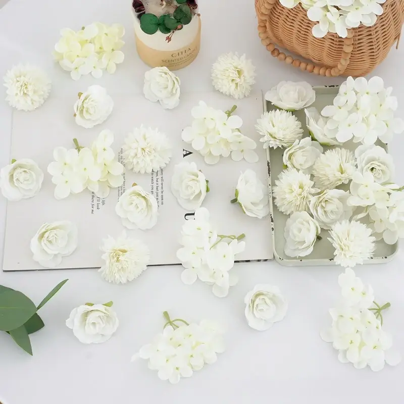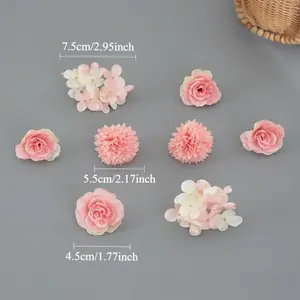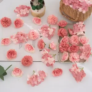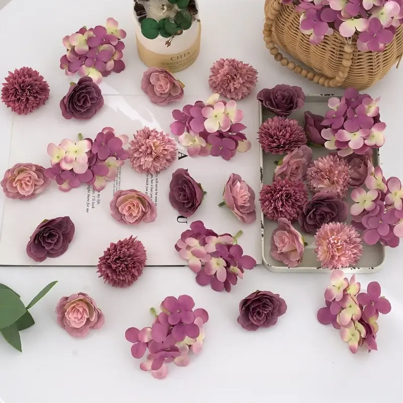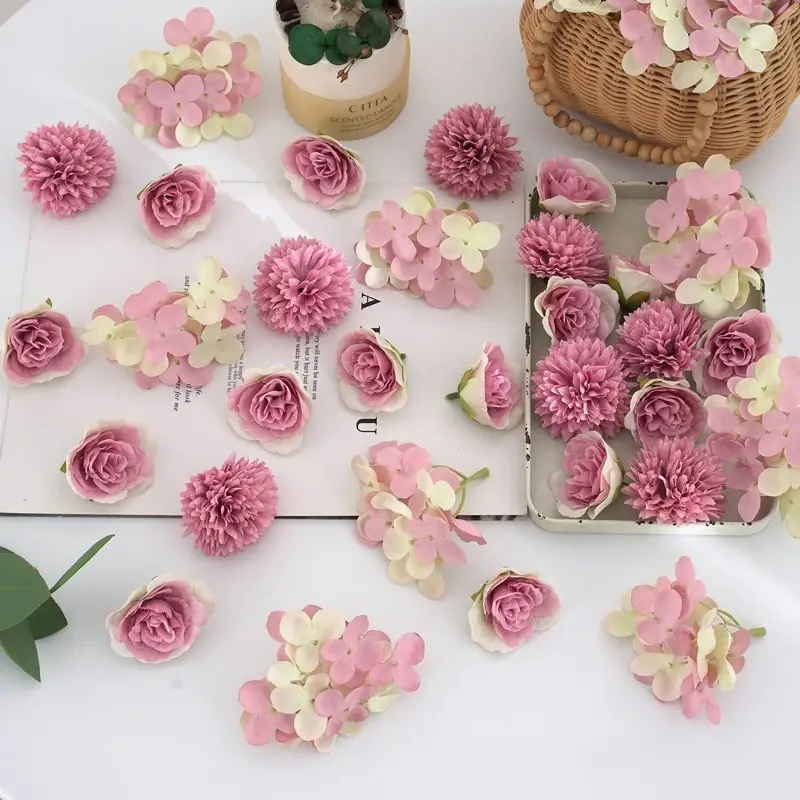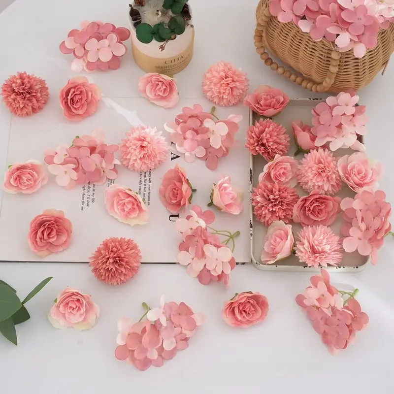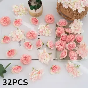 ٣٢ قطعة من رؤوس الزهور الاصطناعية الوردية – ورود صغيرة من الحرير الاصطناعي وزهور الأقحوان – مستلزمات الحرف اليدوية لتزيين حفلات الزفاف، أكاليل الزهور، وتزيين المنازل