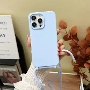 Crossbody حزام الحبل سيليكون قضية الهاتف آيفون 16 15 14 13 12 Mini 11 Pro Max Plus لون الحلوى لينة بولي TPU الغطاء الخلفي