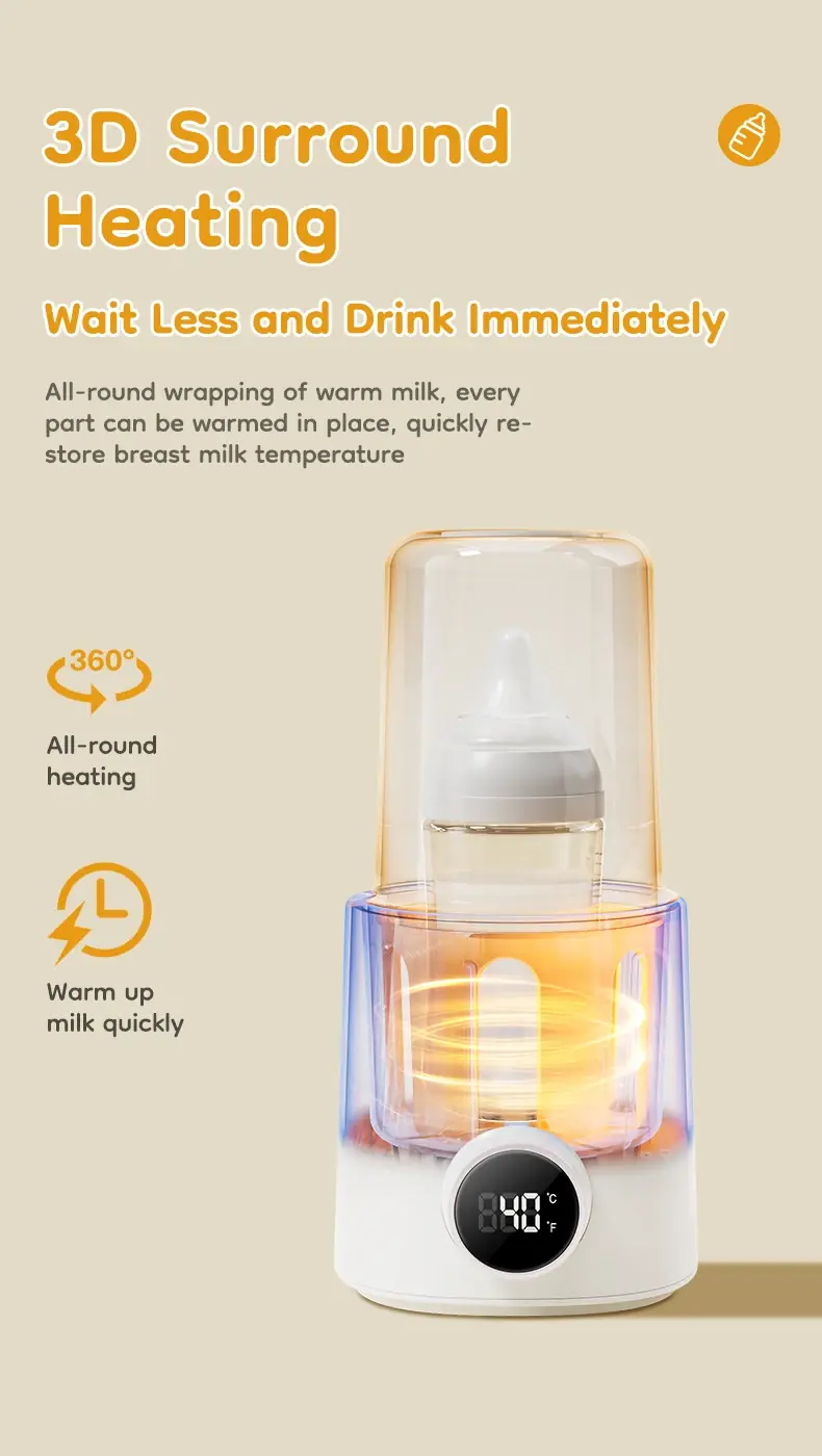 4.360° تضمن تقنية التسخين المحيطي دفءًا متساويًا، وعدم وجود نقاط ساخنة، ولطيفة على الزجاجات.