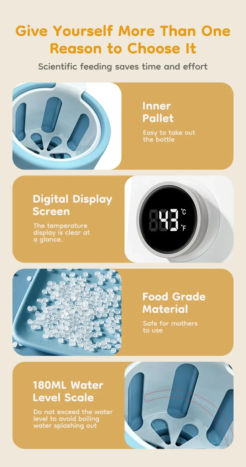 3. درجة الحرارة قابلة للتعديل من 36° إلى 100°: مثالي لتدفئة الحليب أو تسخين الماء أو طعام الأطفال.
