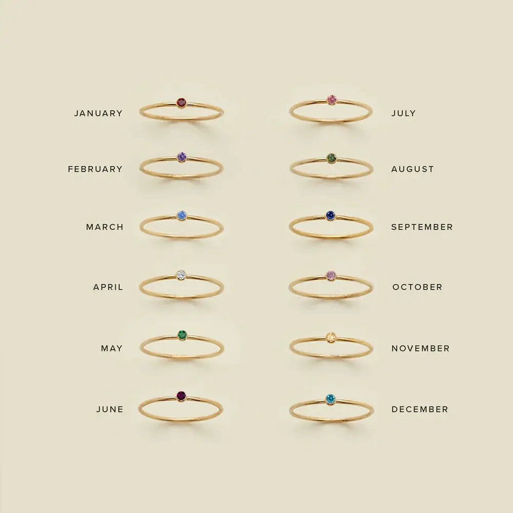 | Main Stone Color | April-Crystal, August-Peridot, December-Aquamarine, July-Rose, June-Amethyst, March-Light Sapphire, November-Jonquil, October-Light Rose, September-Sapphire |